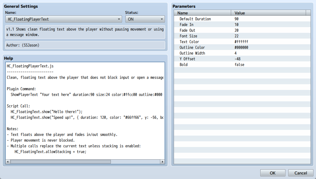 Why use it? Traditional message windows halt gameplay and break immersion. With HC_FloatingPlayerText, you can deliver information instantly and elegantly, keeping your game fast‑paced and engaging. Whether you’re making an action RPG, roguelike, or narrative‑heavy adventure, this plugin helps your text feel integrated into the world.